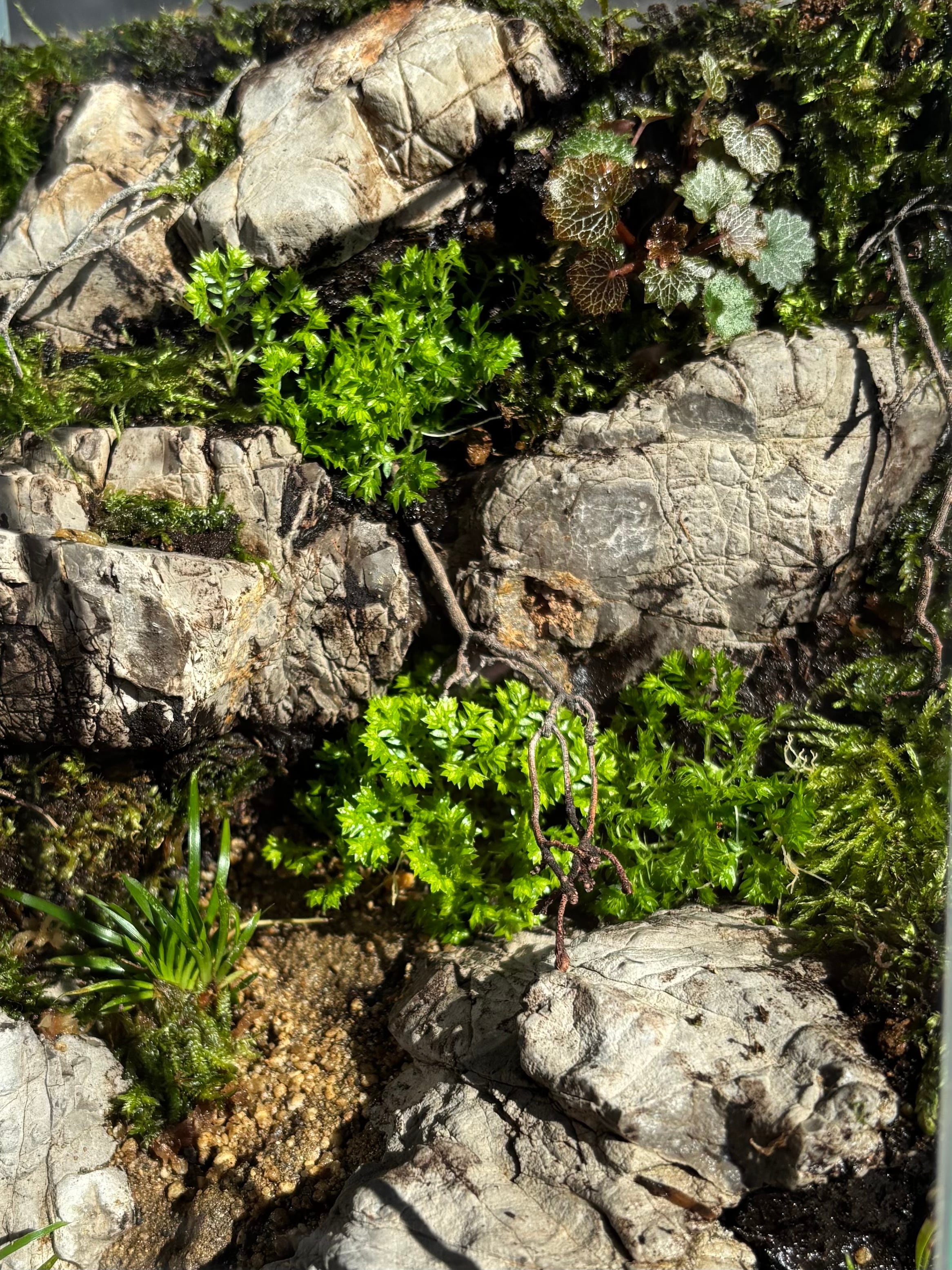 ※4枚目はテラリウムに植栽した例です。右上には屋久島ユキノシタ,左下にはビロードセキショウ。カワイイ!!